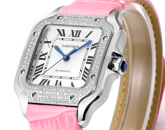 LADY -Rhinestone White 316L Steel - Pink Leather - Automatic - 43*35mm
