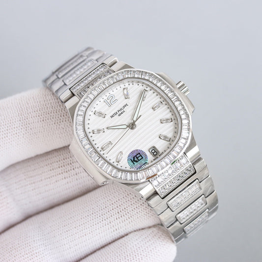 Lady - White - Rhinestones Bezel 316L Steel - Automatic - 35mm