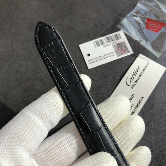 White Silver- Black Leather - Quartz - 42mm