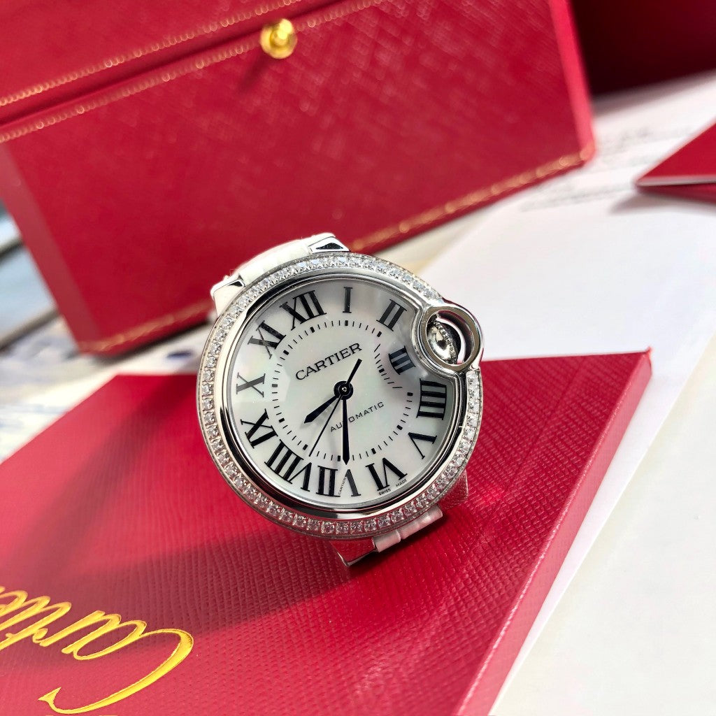 LADY -Rhinestone Bezel- White Leather - Quartz - 33mm